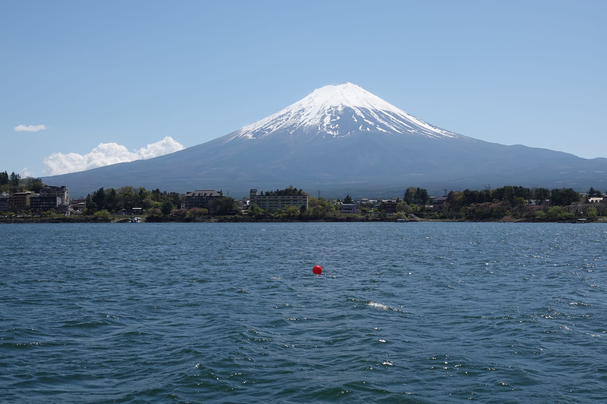 Punkt eins in Fujikawaguchiko, ab aufs Wasser. Wenn es einen See gibt auf dem auch Ausflugsschiffe fahren kann ich fast nicht aus.