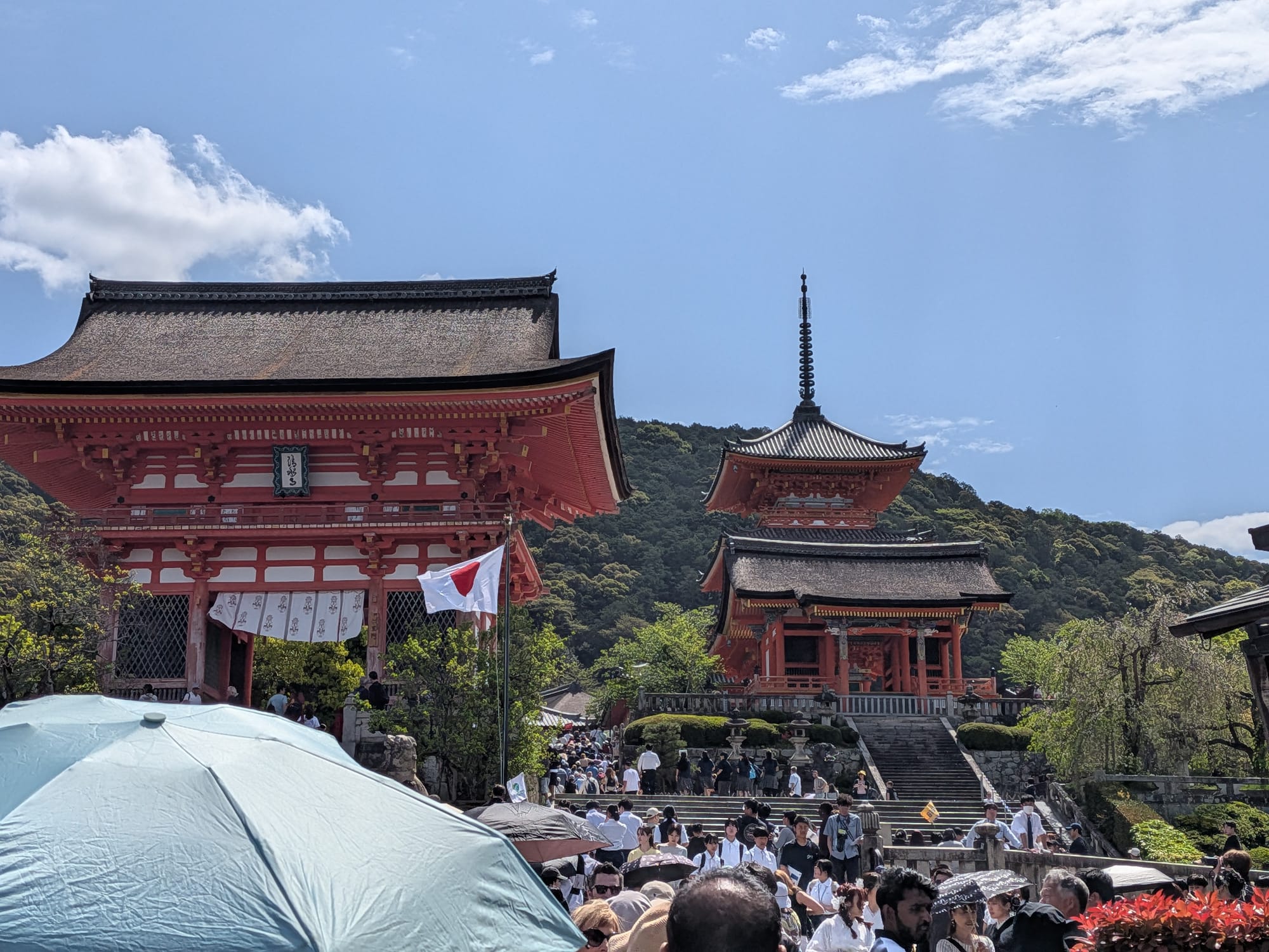 Danach ging es weiter zum Kiyomizu-dera, einer weitläufigen Tempelanlage im Osten Kyotos, die vor allem für ihre große Haupthalle und Terrasse bekannt ist, auf einer enormen Holzkonstruktion an einen Hang gebaut wurde.